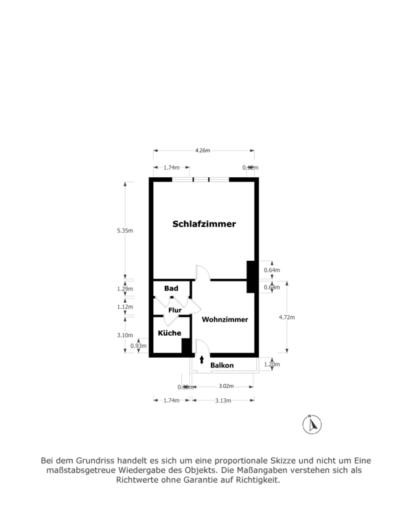 Mit einer Wohnfläche von ca. 50m², seinen zwei Zimmern, einem Balkon, einer Küche, sowie einem Badezimmer bietet diese Wohnung genügend Freiräume und Platz für Kreativität.